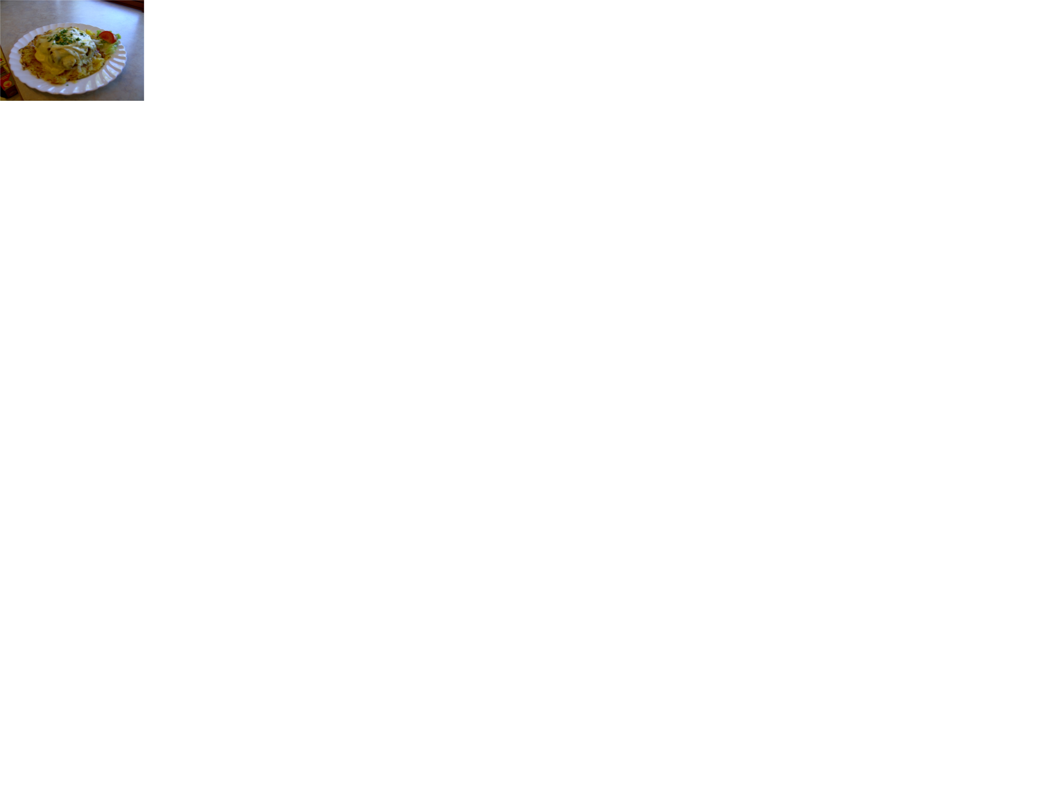 bestehend aus 2 Schweinemedaillons, frische Tomaten und Zwiebeln. Dann wird das Rösti mit Käse überbacken.